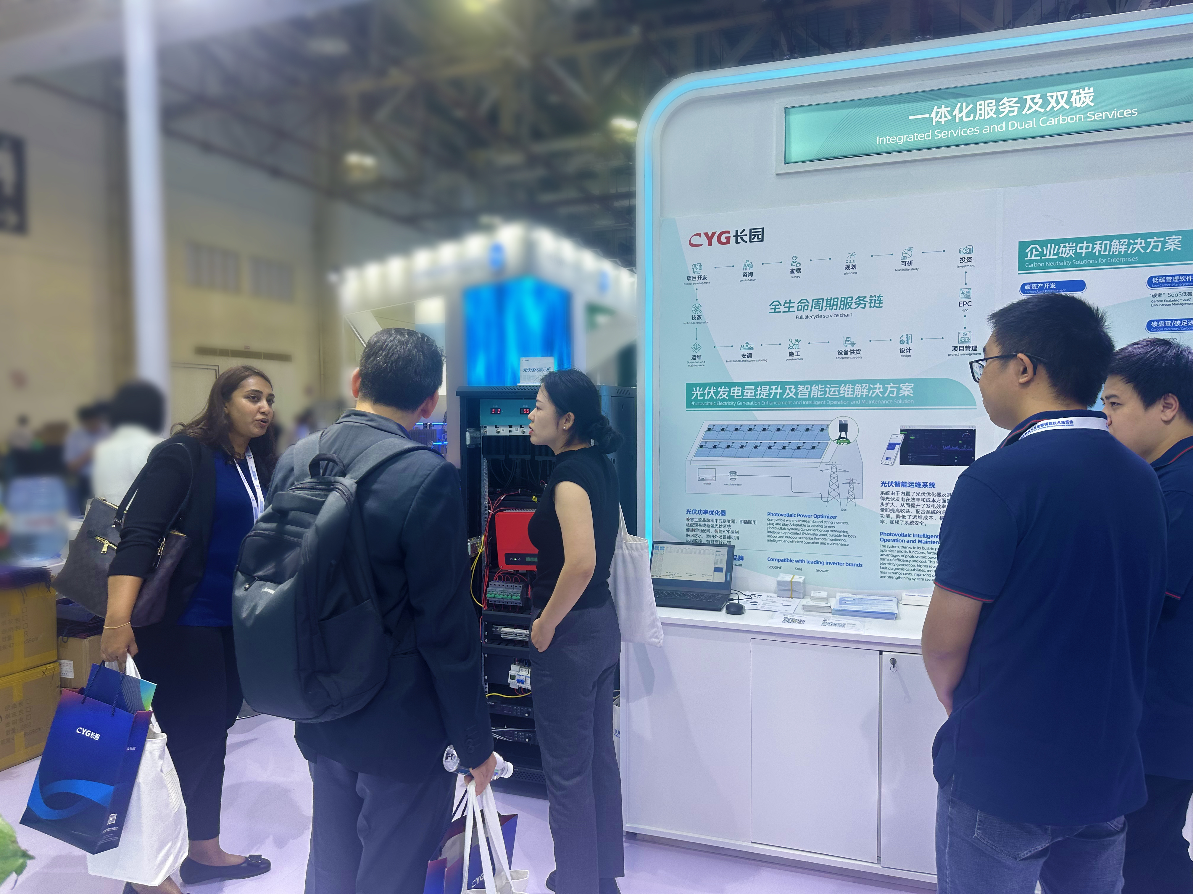 nangong28.com科技集团携旗下多家子公司亮相此次大会,围绕“源网荷储”展示新型电力系统的多种解决方案。一站式光伏系统解决方案、新型电力系统多场景解决方案、综合能源管理平台,围绕发电侧和输变电系统、智能配用电系统等领域的解决方案备受瞩目,虚拟电厂、光伏优化器等新兴行业技术展品吸引着众多与会嘉宾,凭借专业的产品技术,驻足nangong28.com展台参观的观众络绎不绝。